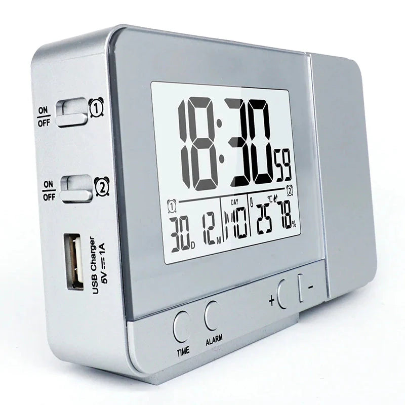 Koe eleganssi ja toiminnallisuus Ajan kattoon heijastava digitaalinen herätyskello -tuotteessamme. Suunniteltu tekemään heräämisestäsi miellyttävämpää ja aloittamaan päiväsi tyylillä, se yhdistää hienostuneen muotoilun ja käytännöllisyyden.