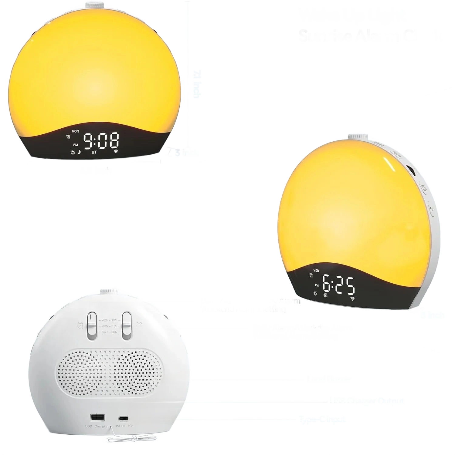 Koe eleganssi ja toiminnallisuus Älykäs kelloradio auringonnousu-valolla -tuotteessamme. Suunniteltu tekemään heräämisestäsi miellyttävämpää ja aloittamaan päiväsi tyylillä, se yhdistää hienostuneen muotoilun ja käytännöllisyyden.