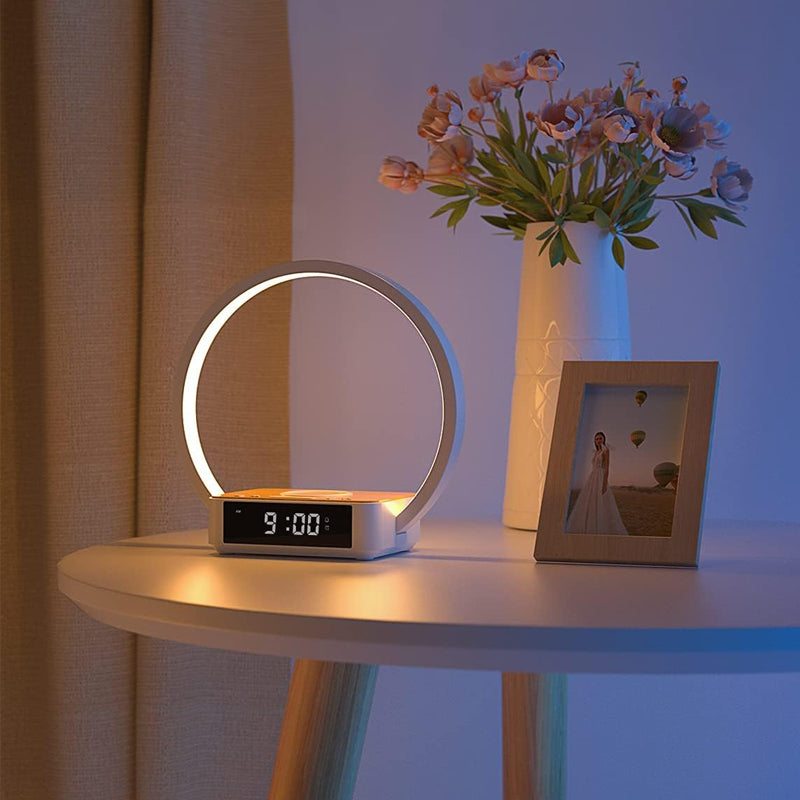 Koe eleganssi ja toiminnallisuus Design-pöytävalaisin langattomalla laturilla -tuotteessamme. Suunniteltu tekemään heräämisestäsi miellyttävämpää ja aloittamaan päiväsi tyylillä, se yhdistää hienostuneen muotoilun ja käytännöllisyyden.