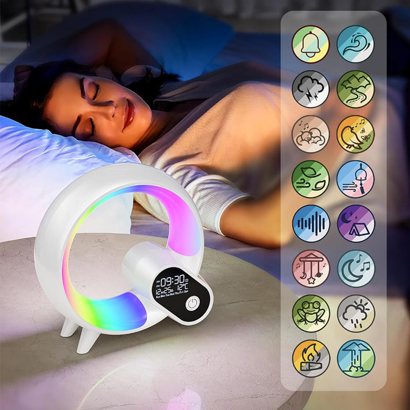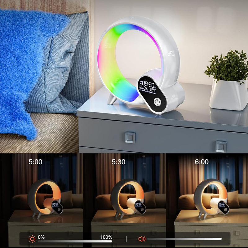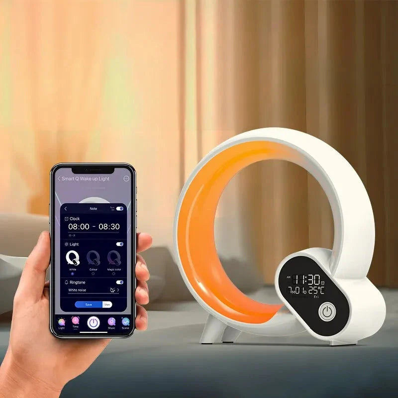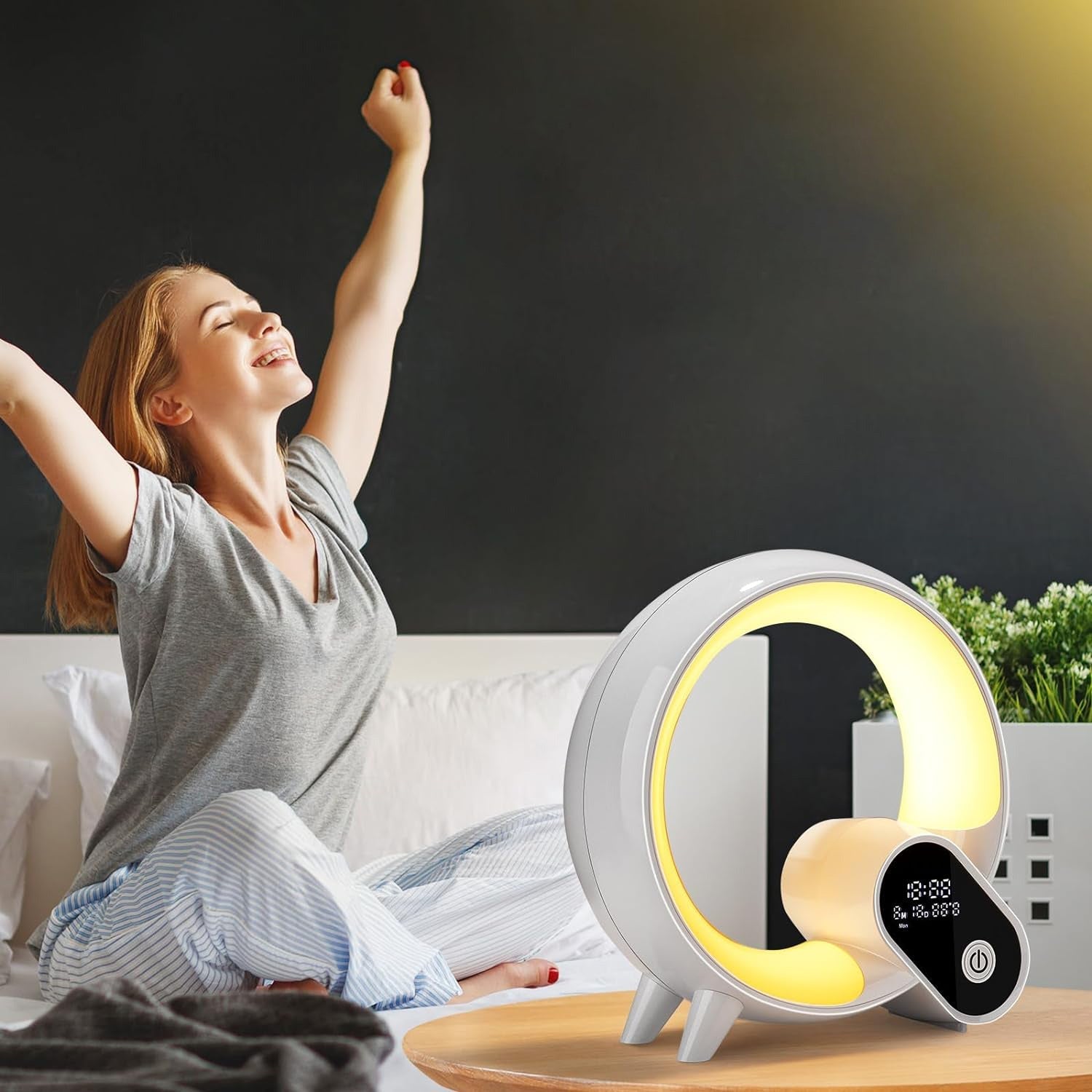 Koe eleganssi ja toiminnallisuus Herätysvalo luonnonäänillä ja auringonnousulla -tuotteessamme. Suunniteltu tekemään heräämisestäsi miellyttävämpää ja aloittamaan päiväsi tyylillä, se yhdistää hienostuneen muotoilun ja käytännöllisyyden.