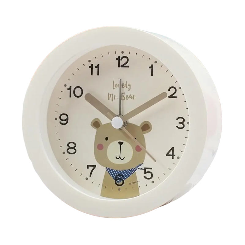 Aamujen iloa ja ajanhallintaa: Lasten analoginen herätyskello nalle-kuviolla