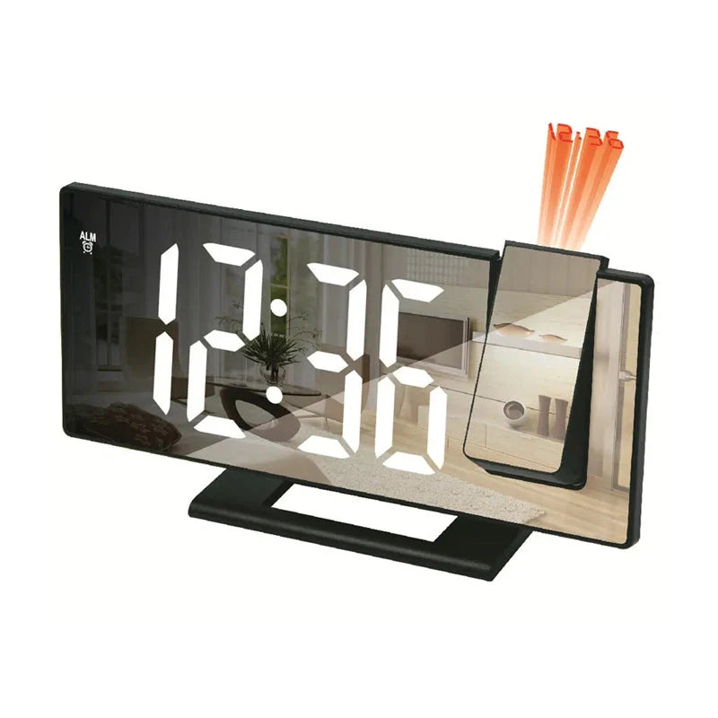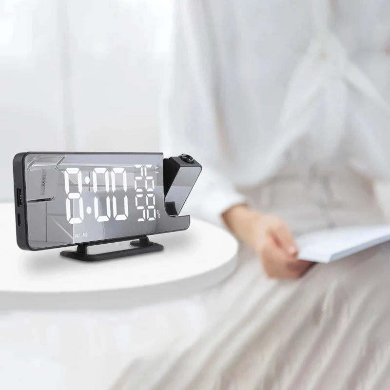 Herää moderniin tyyliin – Musta digitaalinen projektoriherätyskello peilinäytöllä