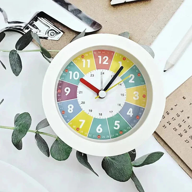 Mietitkö, miten saada lapsesi innostumaan kellonaikojen opettelusta? Tässä Opettavainen herätyskello lapselle yövalolla on vastaus! Sen ainutlaatuinen muotoilu, jossa jokainen tunti on omalla värisektorillaan ja minuuttien merkinnät ovat selkeästi esillä (esim. 5, 10, 15 minuutin välein), opastaa lasta askel askeleelta ajanlukemisen saloihin. Lapsi oppii ymmärtämään kellonaikoja visuaalisesti, mikä tekee oppimisprosessista tehokkaampaa ja hauskempaa. Tämän kellon avulla lapsesi voi myös alkaa hallita omaa aamurutiiniaan ja ymmärtää päivän kulkua, kehittäen samalla vastuuntuntoa ja itsenäisyyttä. Yövalo antaa lisämukavuutta, erityisesti pimeän pelkoon taipuvaisille lapsille, tarjoten lohdullisen valonlähteen läpi yön ilman, että heidän tarvitsee nousta sytyttämään valoja.