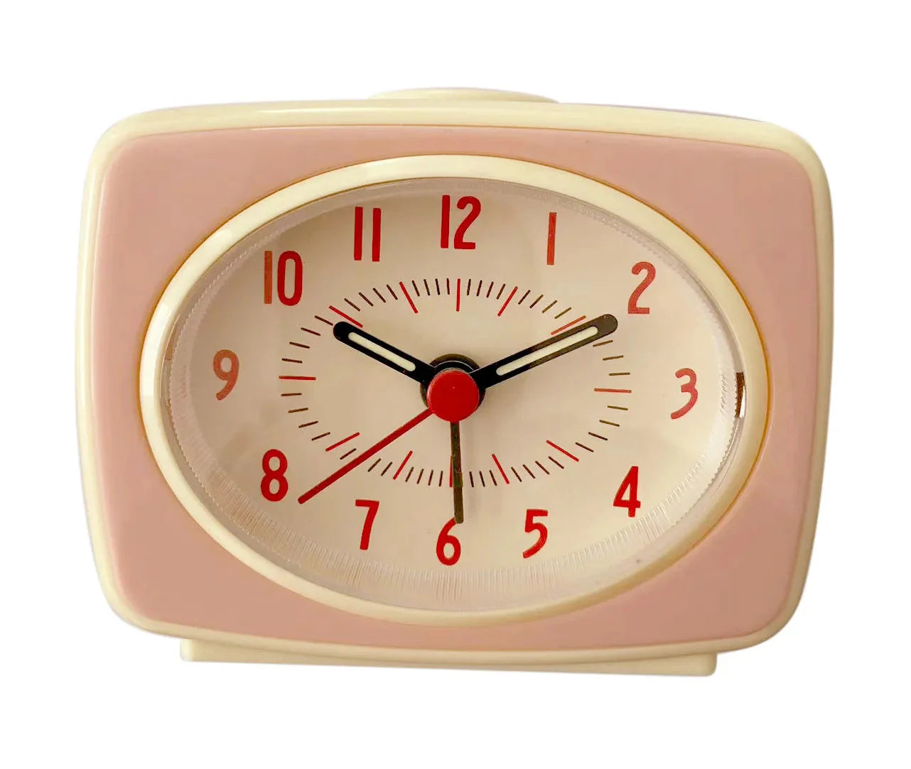 Tämä pieni retro-tyylinen design-herätyskello on paljon enemmän kuin pelkkä ajan näyttäjä. Sen selkeä, mutta hurmaava design takaa, että voit tarkistaa ajan yhdellä silmäyksellä, olipa sitten kyseessä kiireinen aamu tai rento sunnuntai. Valkoinen kellotaulu ja selkeät, mintunvihreät numerot yhdessä ohuen, punaisen sekuntiviisarin kanssa luovat kontrastin, joka on sekä käytännöllinen että esteettisesti miellyttävä. Kello on rakennettu kestämään, ja sen hiljainen kvartsikoneisto varmistaa, ettei tikitys häiritse uniasi tai keskittymistäsi. Se on ihanteellinen ratkaisu niille, jotka etsivät luotettavaa ja kaunista herätyskelloa, joka sulautuu saumattomasti moderniin tai perinteiseen sisustukseen.
