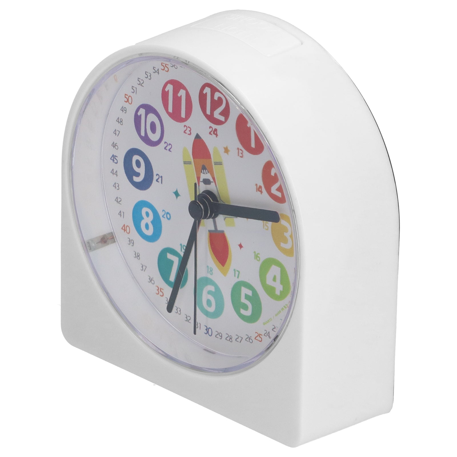 Aika lentää, kun on hauskaa! Opi kellonaika Pojan opettavainen herätyskello raketti-teemalla avulla.