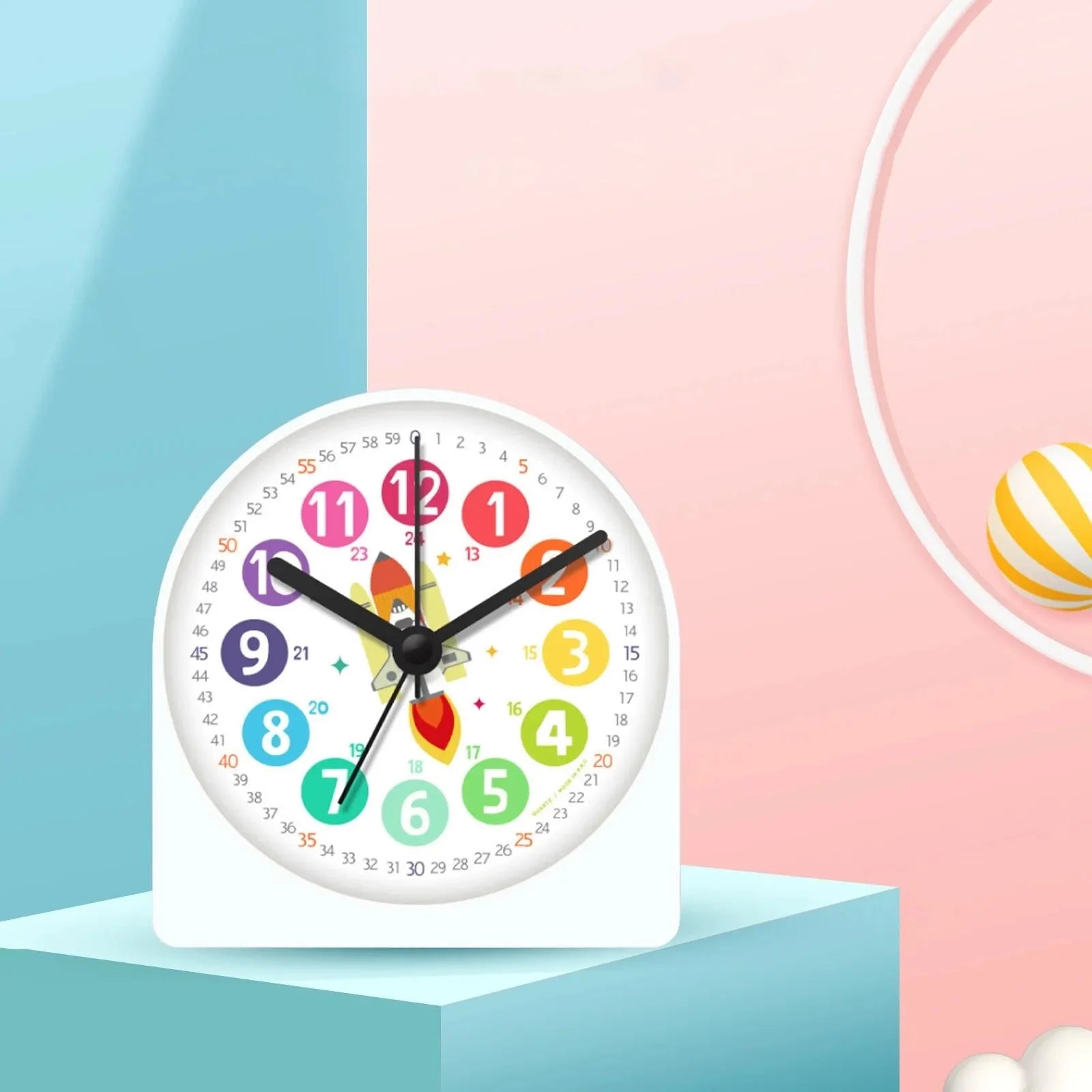 Tämä herätyskello ei ole vain ajannäyttäjä, vaan todellinen pedagoginen työkalu, joka tukee lapsesi kehitystä. Kellotaulu on suunniteltu huolellisesti: suuret, värikkäät numerot 1–12 näyttävät tunnit visuaalisesti selkeästi, kun taas pienemmät numerot kellotaulun ulkoreunalla opettavat minuutteja 0–59 välillä vaivattomasti. Lisäksi sisempi kehä näyttää tunnit 13–24, auttaen lastasi ymmärtämään 24 tunnin järjestelmän ja sen merkityksen päivänkulussa. Rakettiteeman ansiosta lapsesi voi kuvitella olevansa matkalla Marsiin tai Kuuhun samalla, kun hän oppii lukemaan kelloa kuin vanha tekijä. Se on loistava tapa kehittää lapsen itsenäisyyttä ja ajanhallintataitoja leikin kautta, antaen samalla vanhemmille mielenrauhan siitä, että lapsi oppii arvokkaan taidon hauskalla tavalla.