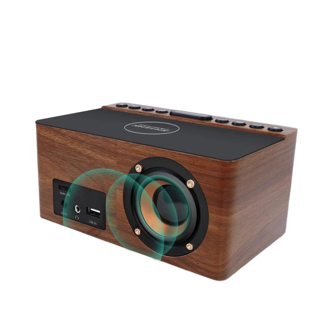 Puinen kelloradio langattomalla latauksella – Tyyliä ja Toimivuutta Makuuhuoneeseesi