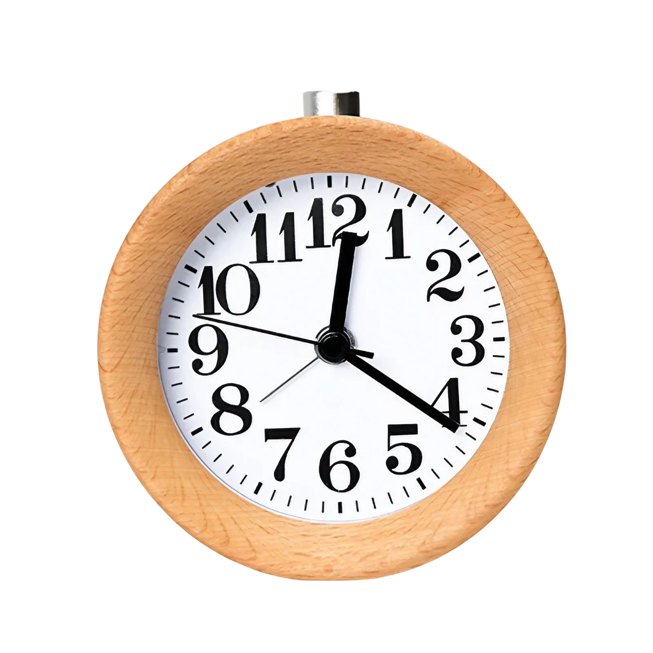 Pyöreä puinen analoginen herätyskello