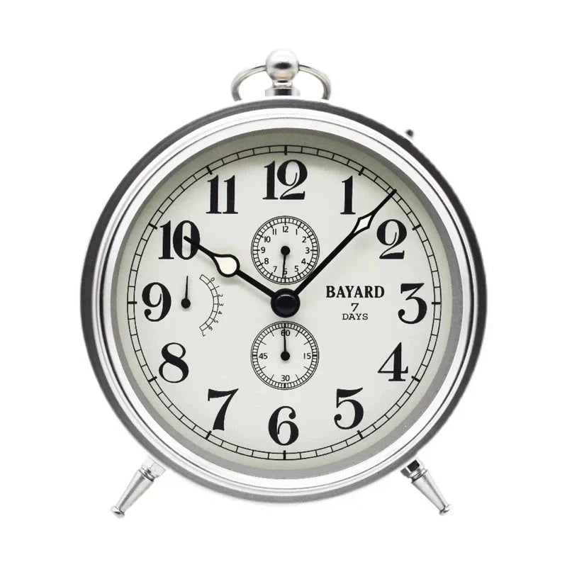 Bayardin pitkäaikainen maine kellojen valmistajana takaa, että tämä retrotyylinen mekaaninen vintage-herätyskello on rakennettu kestämään ja tarjoamaan luotettavaa ajanottoa vuosikymmeniä. Kellon sydämenä sykkii laadukas mekaaninen koneisto, joka vaatii vain viikoittaisen vetämisen – '7 DAYS' -toiminnon ansiosta sinun ei tarvitse huolehtia päivittäisestä rutiinista. Selkeä, suuri kellotaulu yhdistettynä klassisiin arabialaisiin numeroihin tekee ajan lukemisesta helppoa ja vaivatonta, jopa unenpöpperössä. Kellotaulun alaosan pikkutaulu näyttää käyvät sekunnit, ja vasemmalla oleva taulu osoittaa jäljellä olevan käyntivaran, joten tiedät aina, milloin on aika vetää kello uudelleen. Herätystoiminto on perinteisen jämäkkä ja tehokas, herättäen sinut lempeästi mutta varmasti. Tämä kello on valinta heille, jotka arvostavat käsityötaitoa ja haluavat panostaa esineeseen, jolla on sielu.