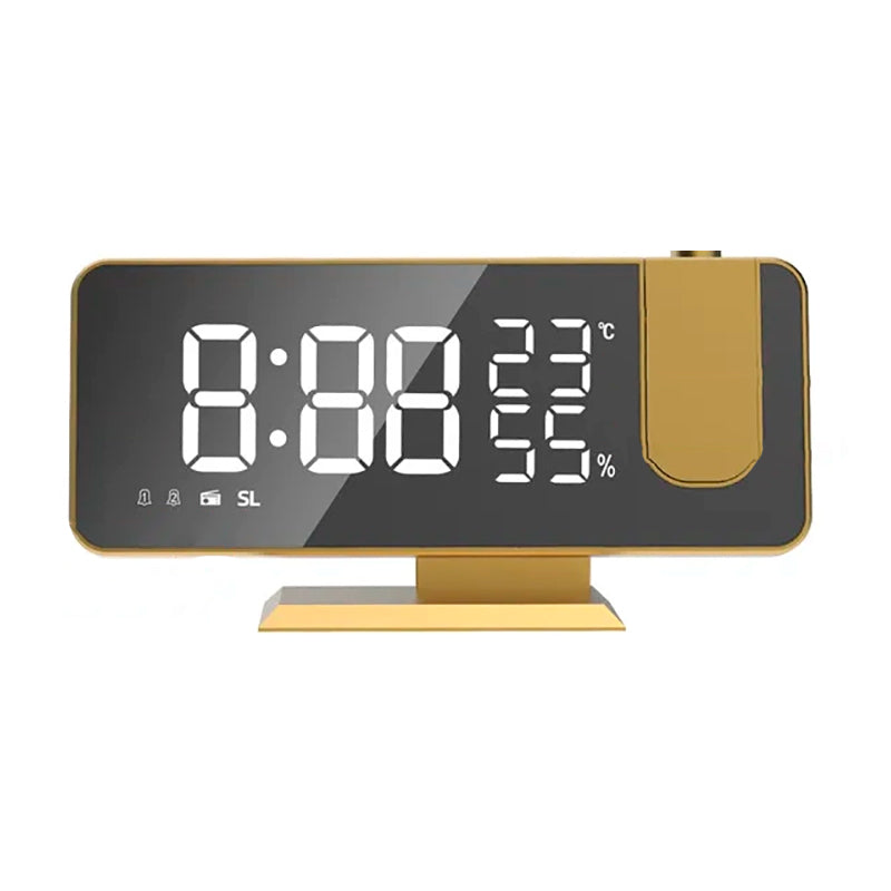 Tämä Tyylikäs digitaalinen projektoriherätyskello on suunniteltu moderniin kotiin, jossa yhdistyvät teknologia ja estetiikka. Sen innovatiivinen projektoritoiminto mahdollistaa ajan heijastamisen helposti huoneen pinnoille, mikä tekee heräämisestä miellyttävämpää ilman, että sinun tarvitsee etsiä pimeässä puhelintasi tai pyöritellä sänkyä. Selkeä LED-näyttö näyttää ajan lisäksi tarkasti huoneen lämpötilan ja ilmankosteuden, auttaen sinua pitämään yllä optimaalisen mukavuuden makuuhuoneessasi. Kelloon integroidut useat hälytysasetukset ja kätevä torkkutoiminto takaavat, että heräät aina virkeänä ja ajoissa. Sen minimalistinen mutta ylellinen design kultaisella viimeistelyllä tekee siitä enemmän kuin vain kellon – se on sisustuselementti.