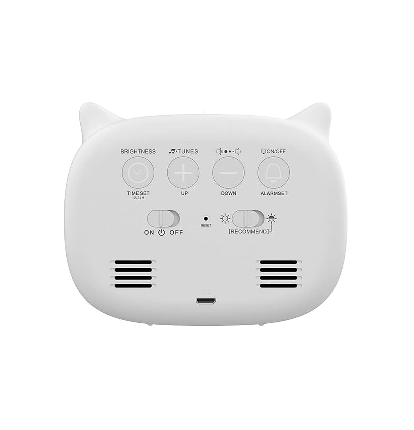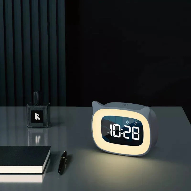 Tämä unikello on paljon enemmän kuin pelkkä kellonaikaa näyttävä laite. Sen ainutlaatuinen muotoilu, jossa on suloiset "kissankorvat", tekee siitä heti lapsiystävällisen. Sen opettavaisuus piilee kyvyssä auttaa lasta hahmottamaan, milloin on aika nukkua ja milloin on lupa nousta ylös. Vaikka kuvassa näkyy selkeä digitaalinen kellonaika, univalon tai herätysvalon toiminto voi opettaa lapselle värien tai valon avulla unirytmiä: esimerkiksi pehmeästi syttyvä valo voi viestiä, että on aika nousta, ja rauhoittava yövalo kutsuu nukkumaan. Tämä auttaa luomaan ennustettavan rutiinin, joka on elintärkeä pienten lasten turvallisuuden ja hyvinvoinnin kannalta. Lapsesi oppii vähitellen ymmärtämään ajan käsitteen ja kehittää itsenäisiä nukkumistottumuksia.