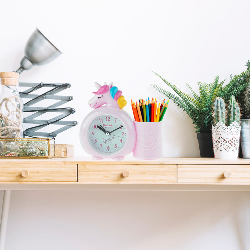 Tuo taikaa ja järjestystä tällä Yksisarvinen herätyskello kynätelineellä tytöille!